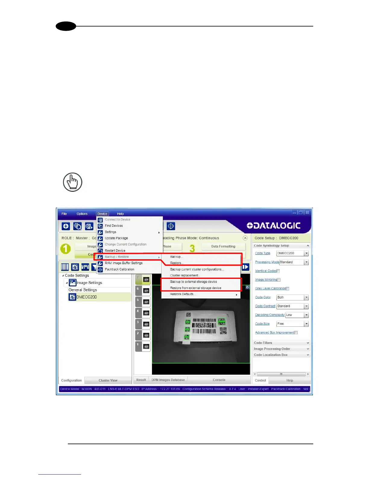 Backup and Restore to external device is supported by DL.CODE for all reading devices