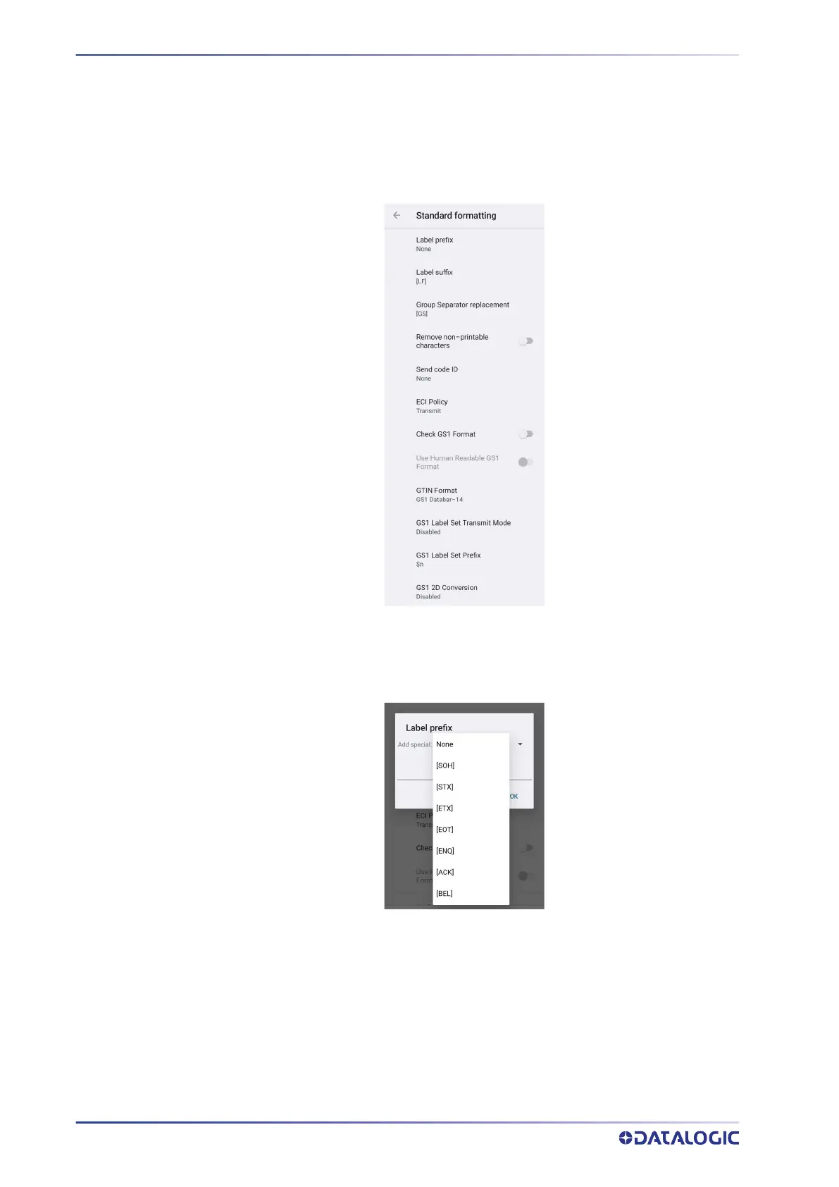 Allows to format the barcode text by enabling and configuring the use of prefix, suffix,