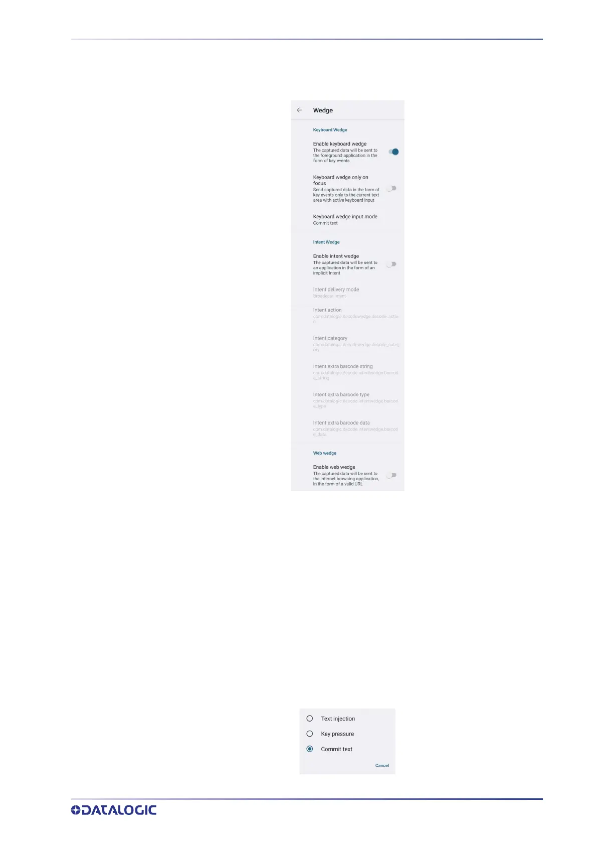 Use it to enable or disable the keyboard wedge and the intent wedge:
