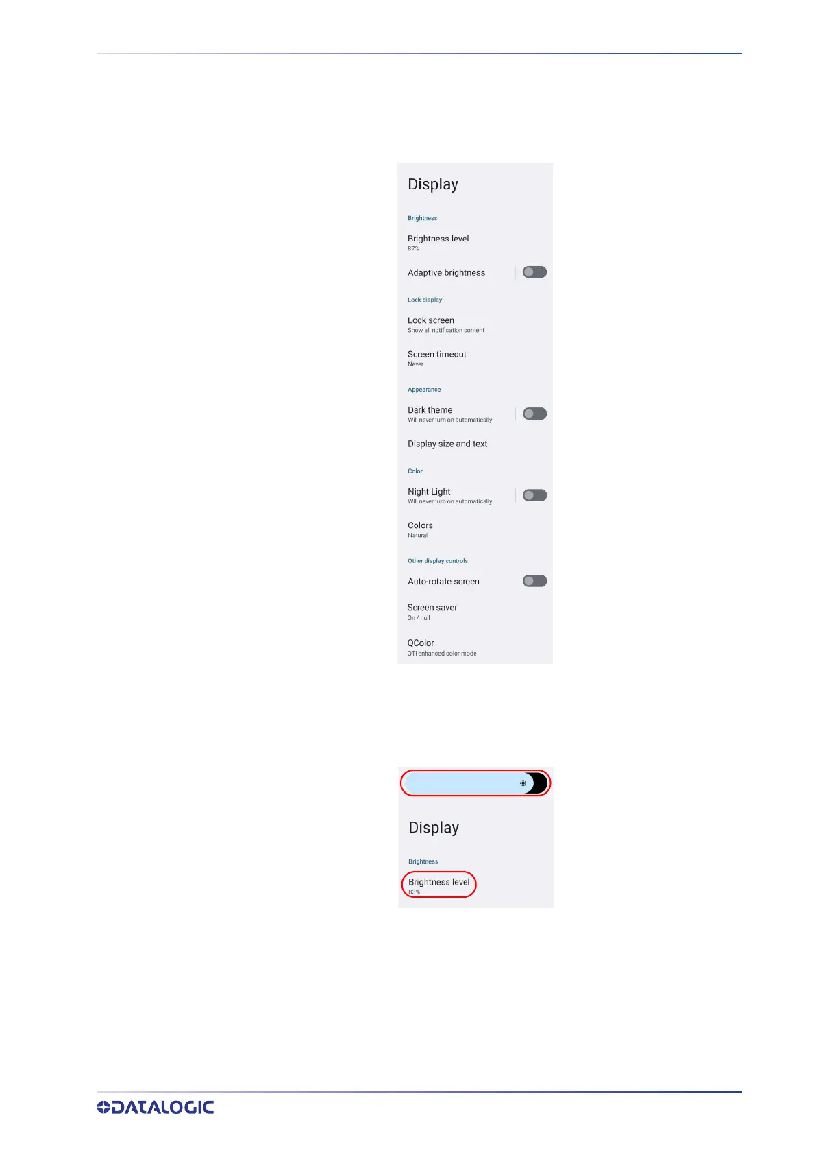 Tap Brightness level and use the slider at the top of the screen to adjust the screen