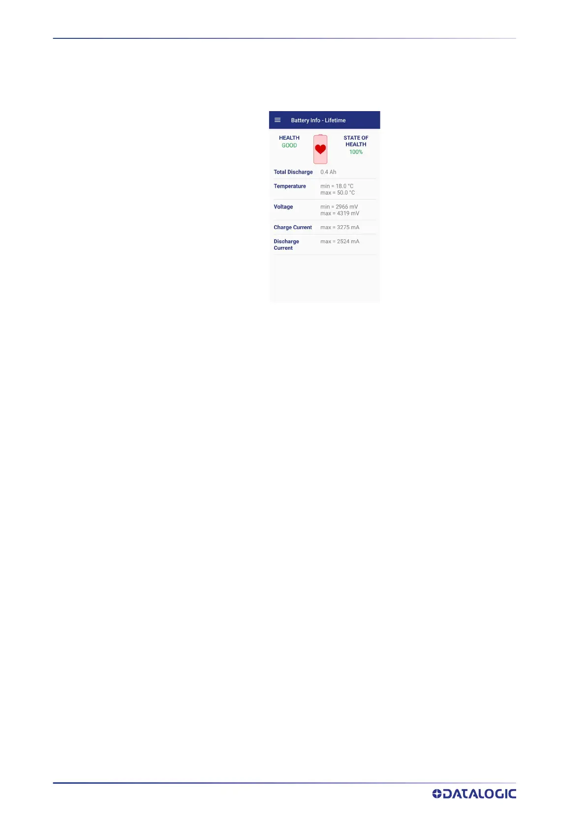 Shows the current battery health and warns potential errors.