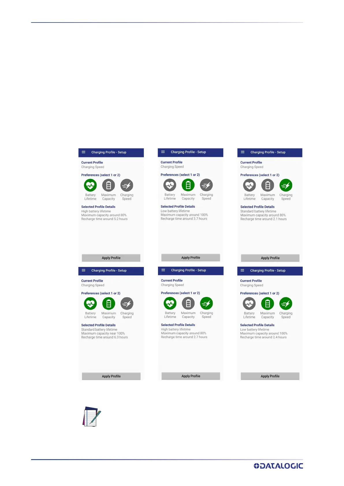 You can configure up to 6 different charging profiles: