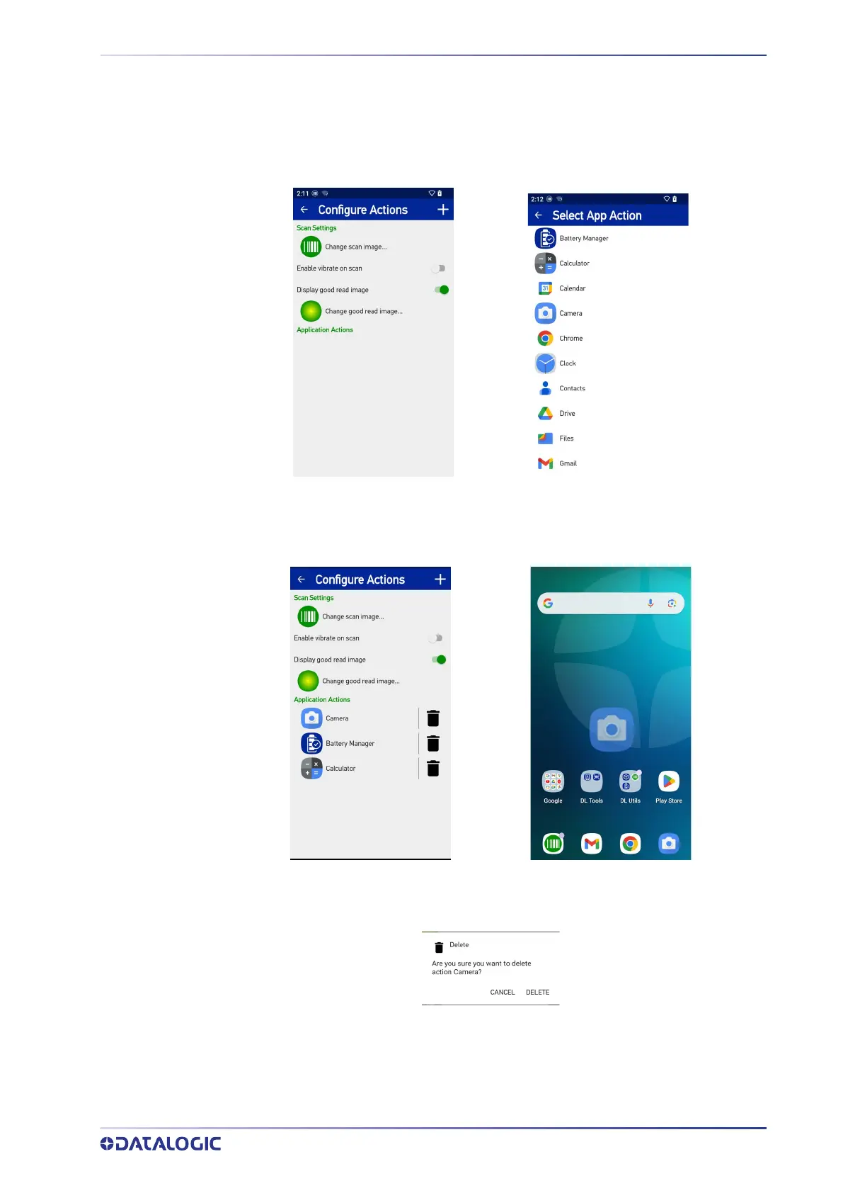 To remove an application from the actions list, tap the trash bin icon on its right.