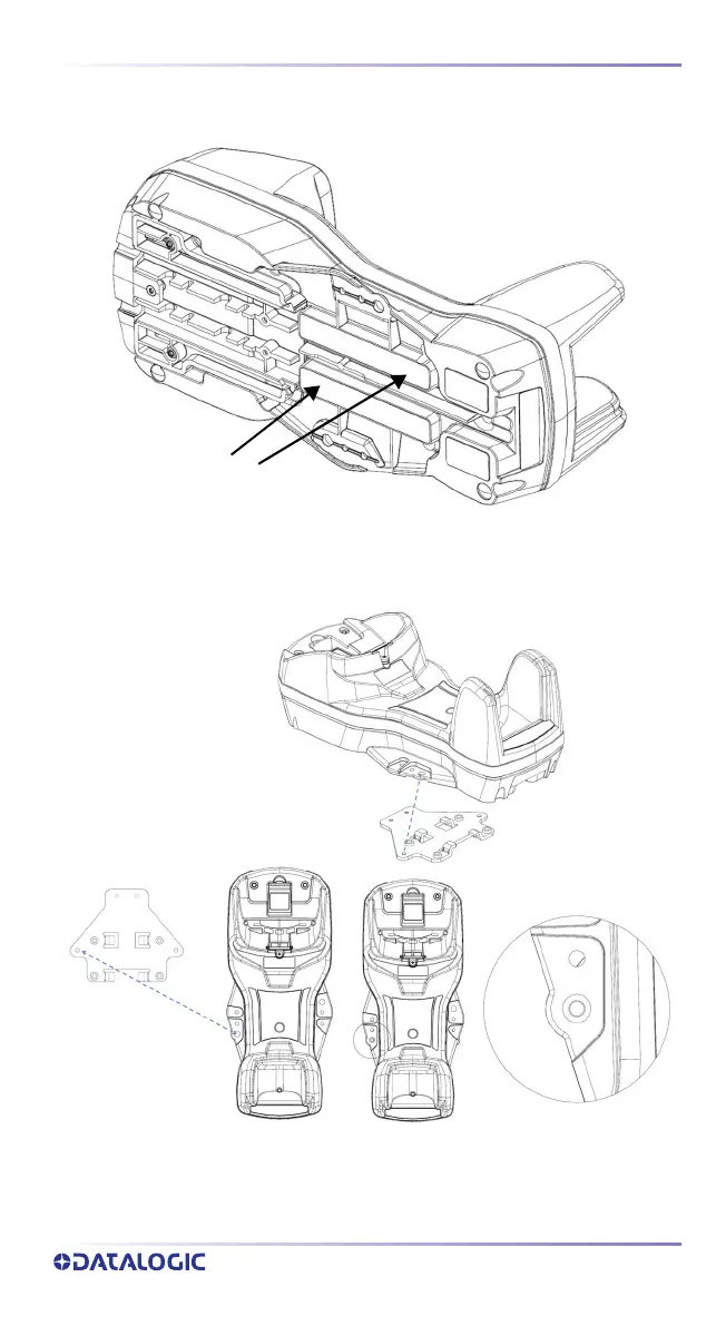 2. Remove the adhesive strips protecting the mounting tabs on the base sta-