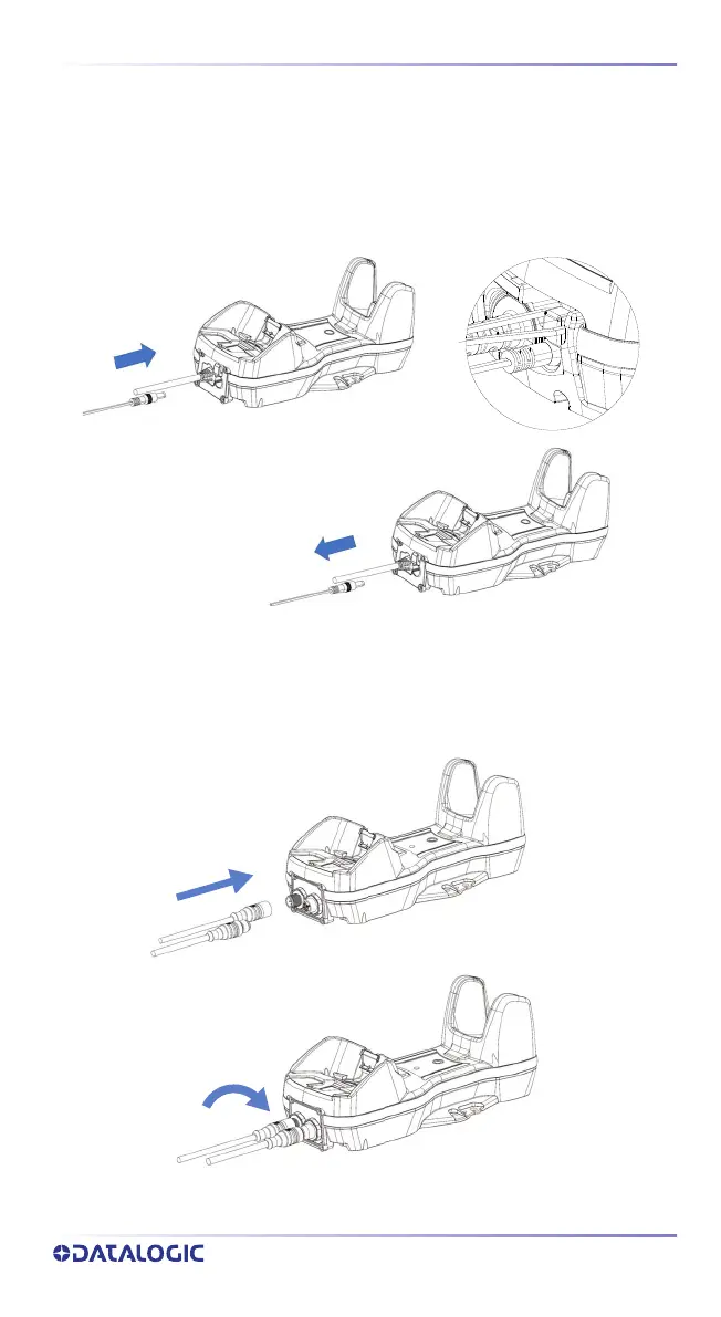 Finally, power on the cradle and lock the power cable on the strain relief.