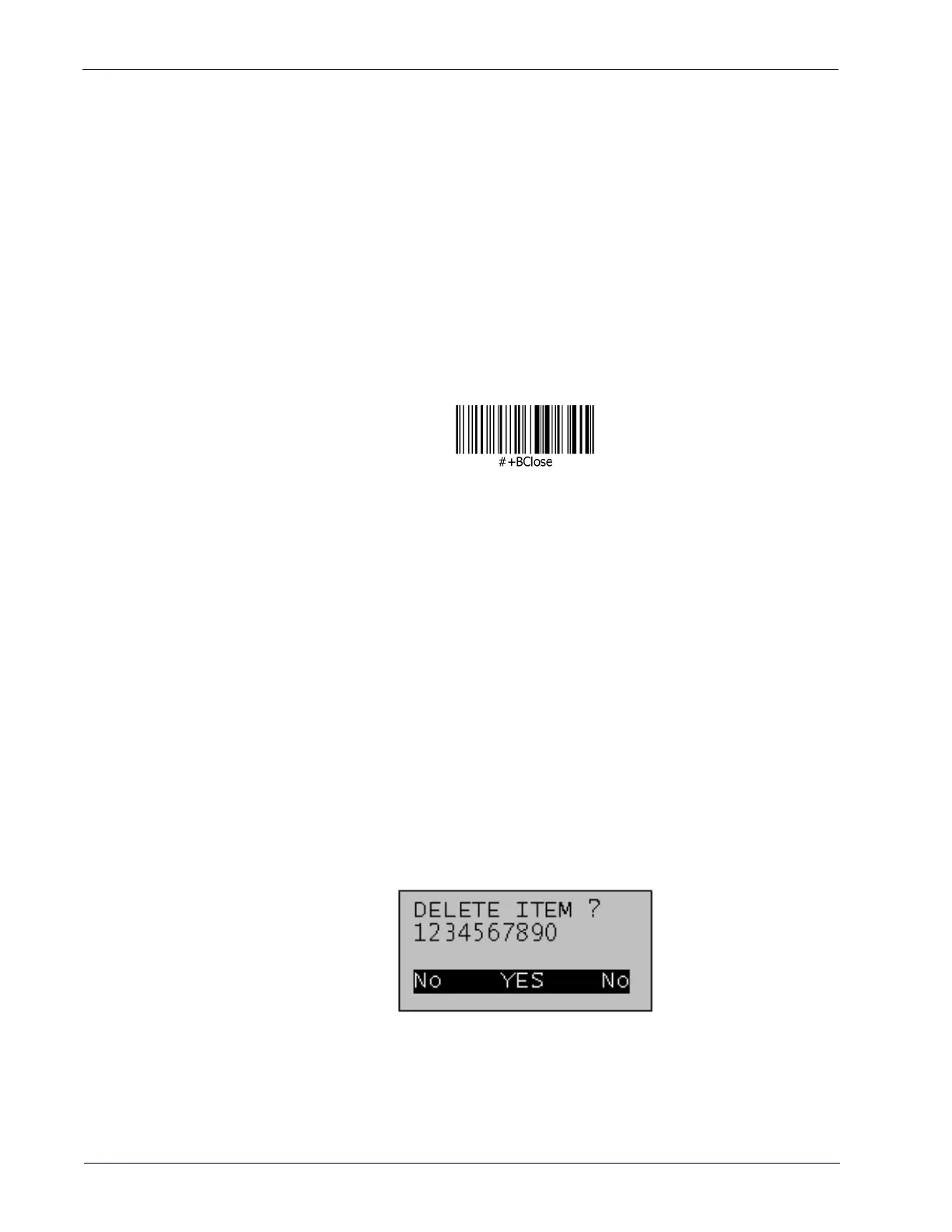and '▼' key to select the item's code from a list of stored items. Press "ENTER" to delete the