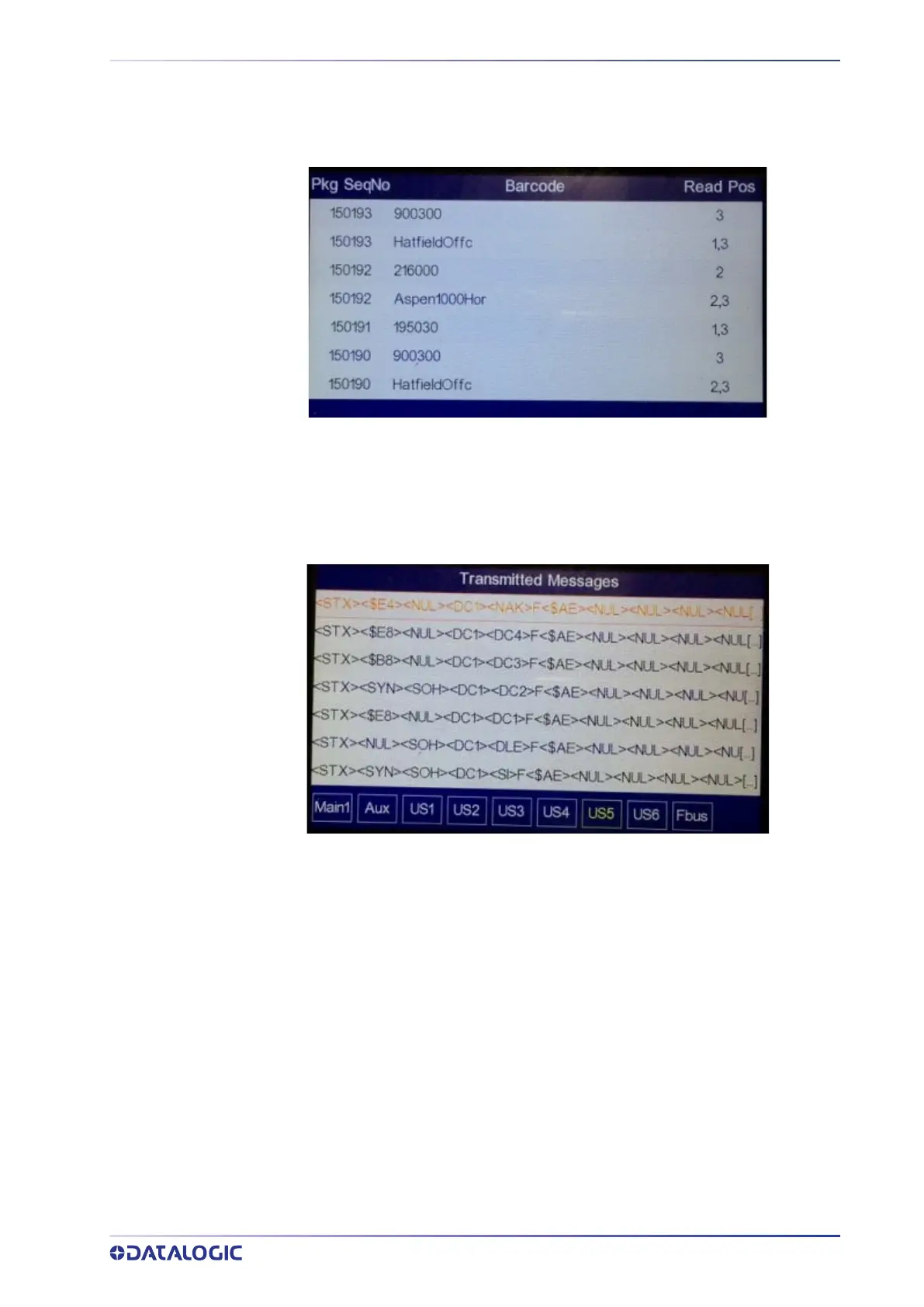 Displays a line for each barcode, with package sequence number and read position. If