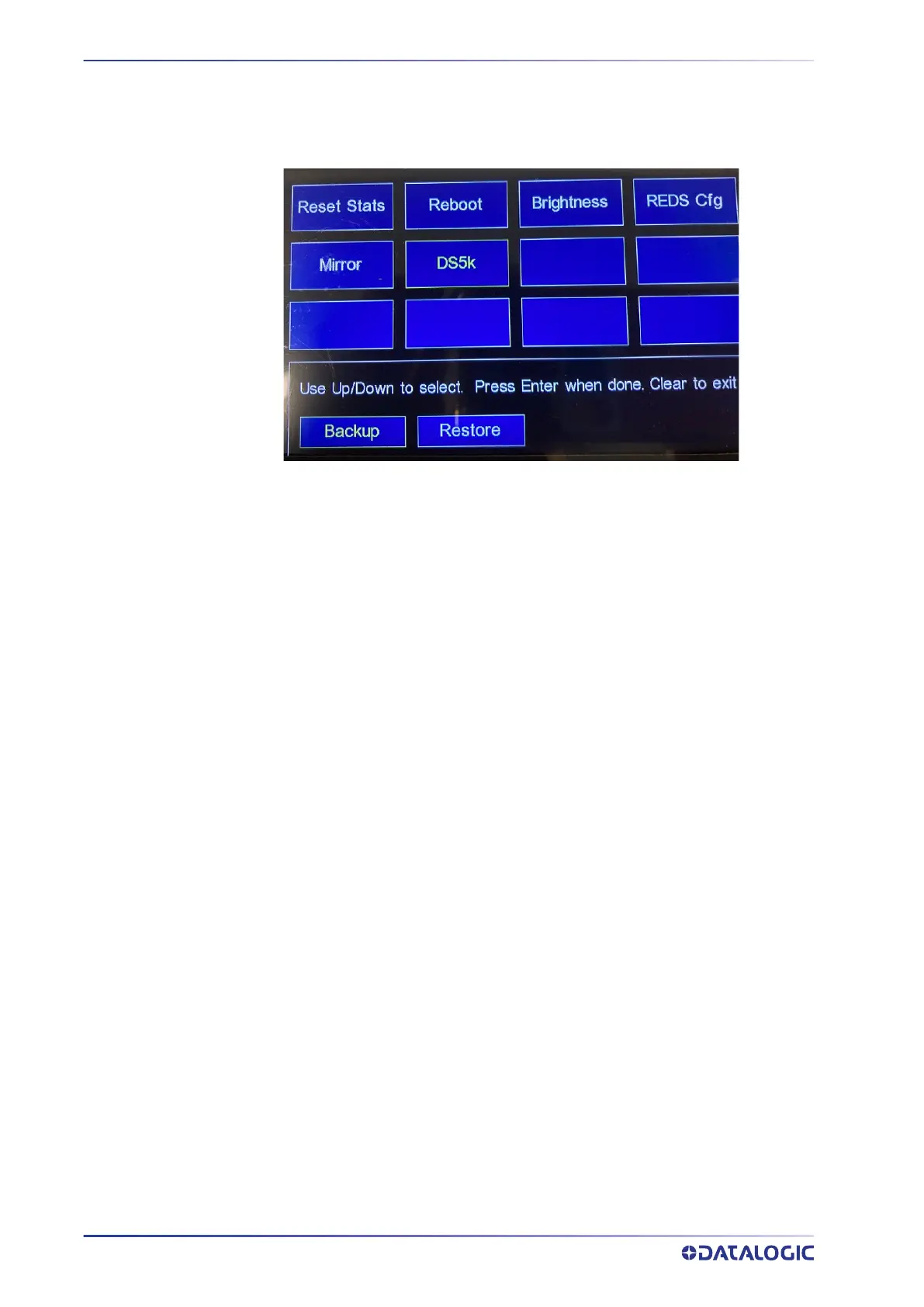 Perform a Backup or Restore for the DS5000 using the SC5100 keypad. Go to Utilities,