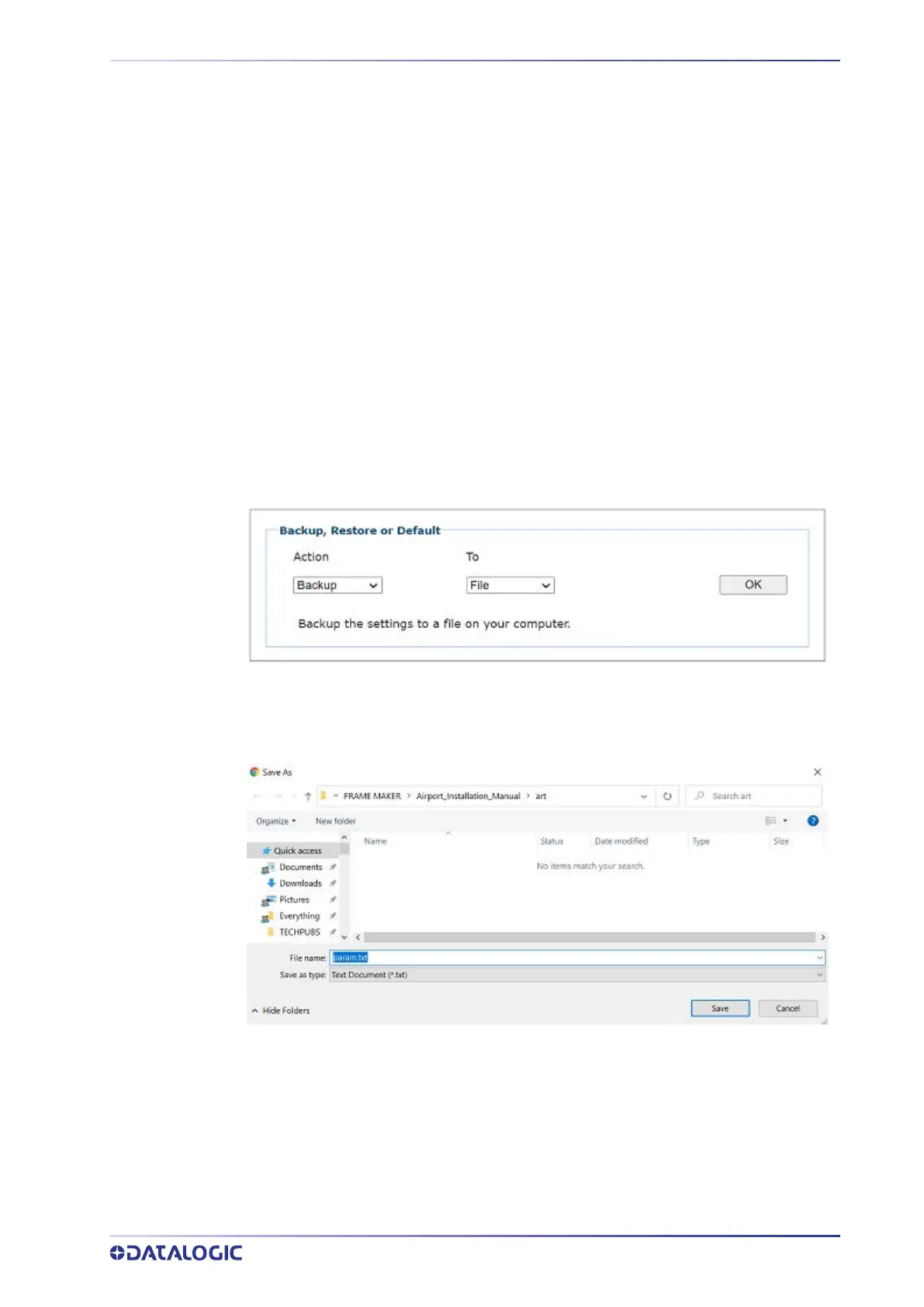 OK and a text backup file of the parameters is available.