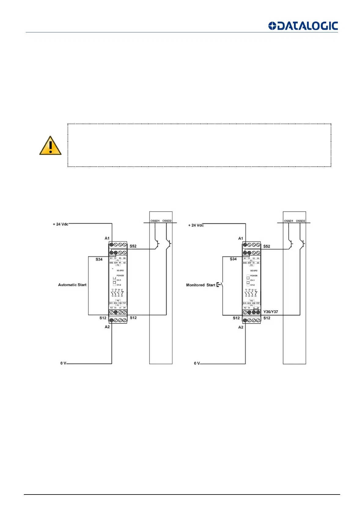 The OSSD1 and OSSD2 safety contacts cannot be connected in series or in parallel, but can be used