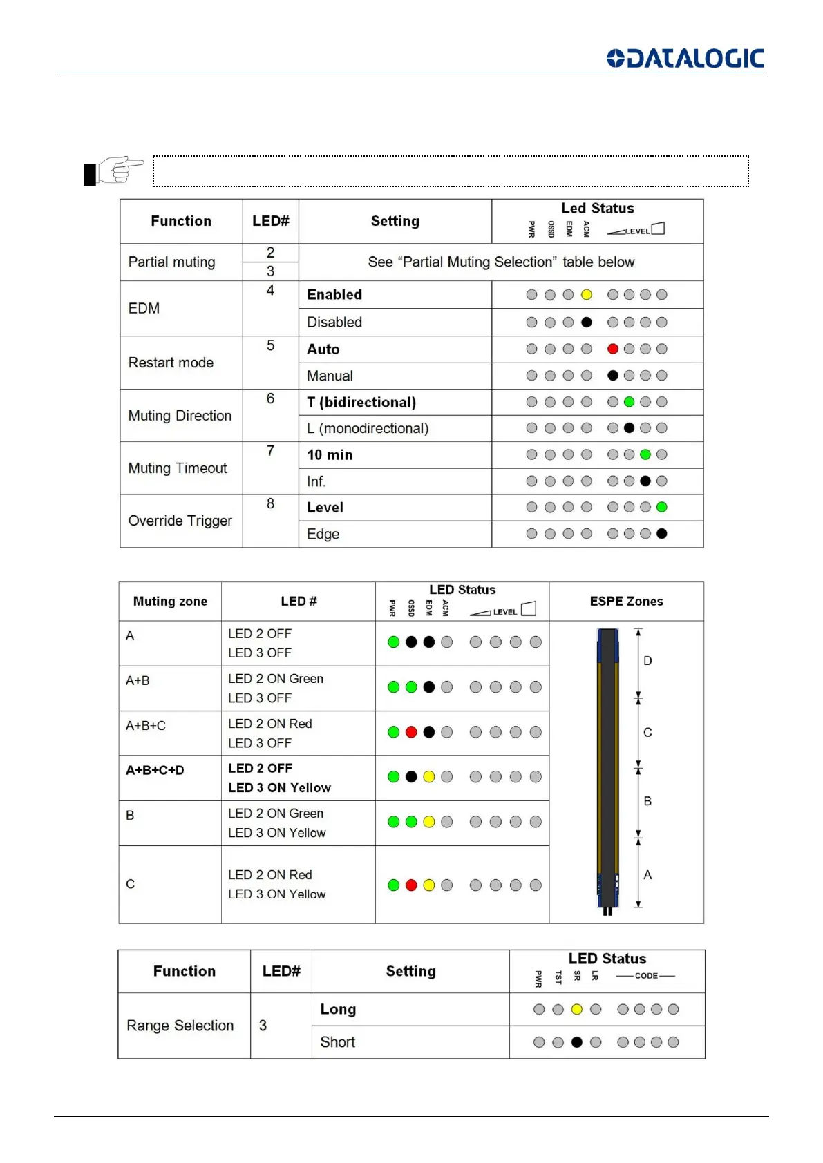 Datalogic SG2 BASE Series - 6.2 FUNCTION LIST; Partial Muting Selection; TX Function list