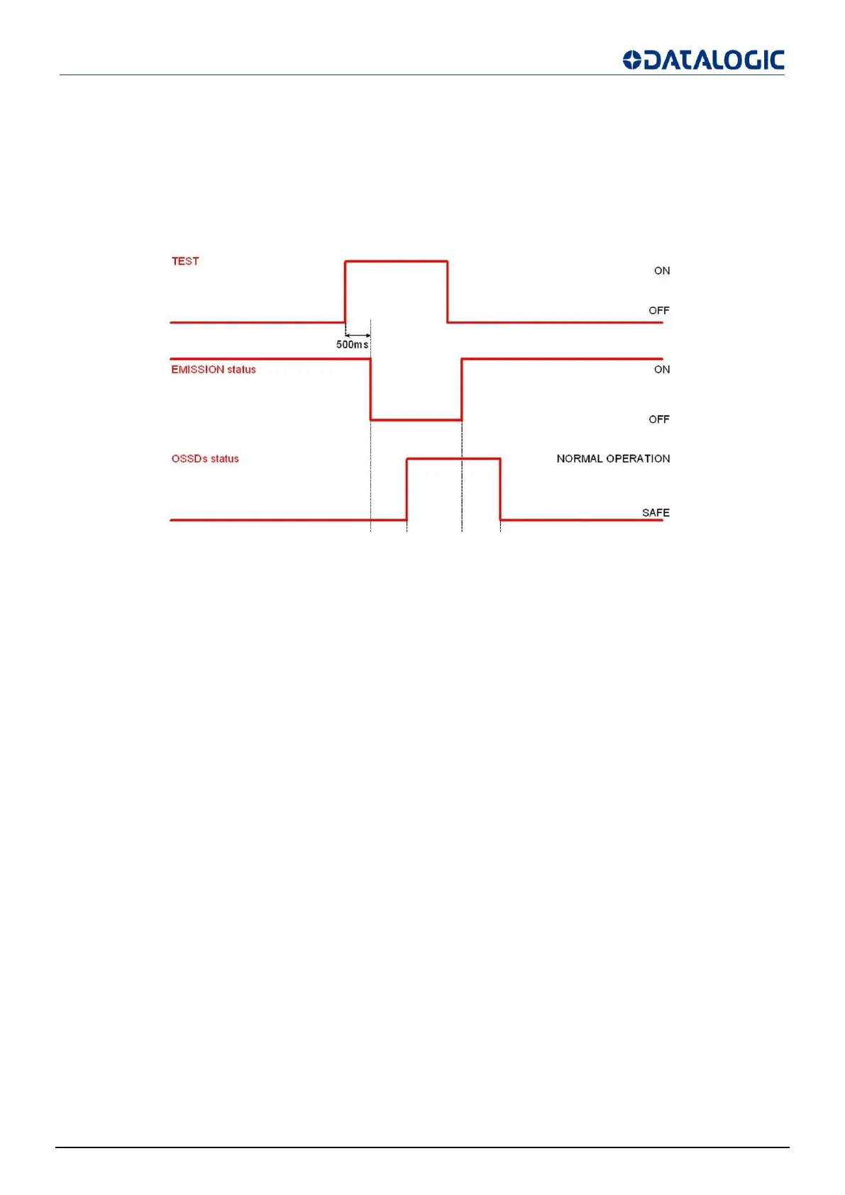 As shown in the timing diagram below, the OSSDs go OFF (BREAK status) after 500msec (plus a cycle time) and