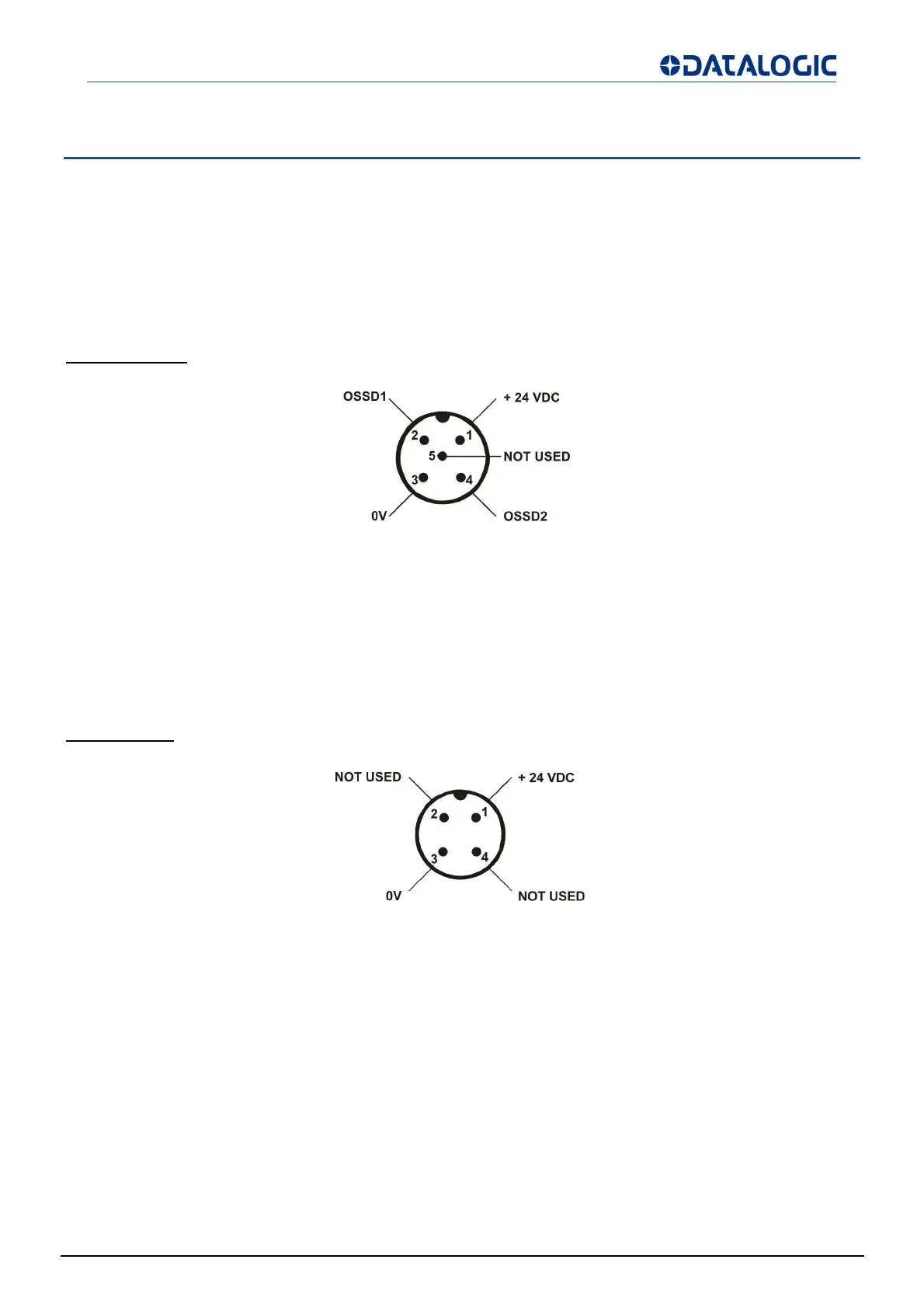 For receiver a M12 5-poles connector is used, while for emitter a M12 4-poles connector is used.