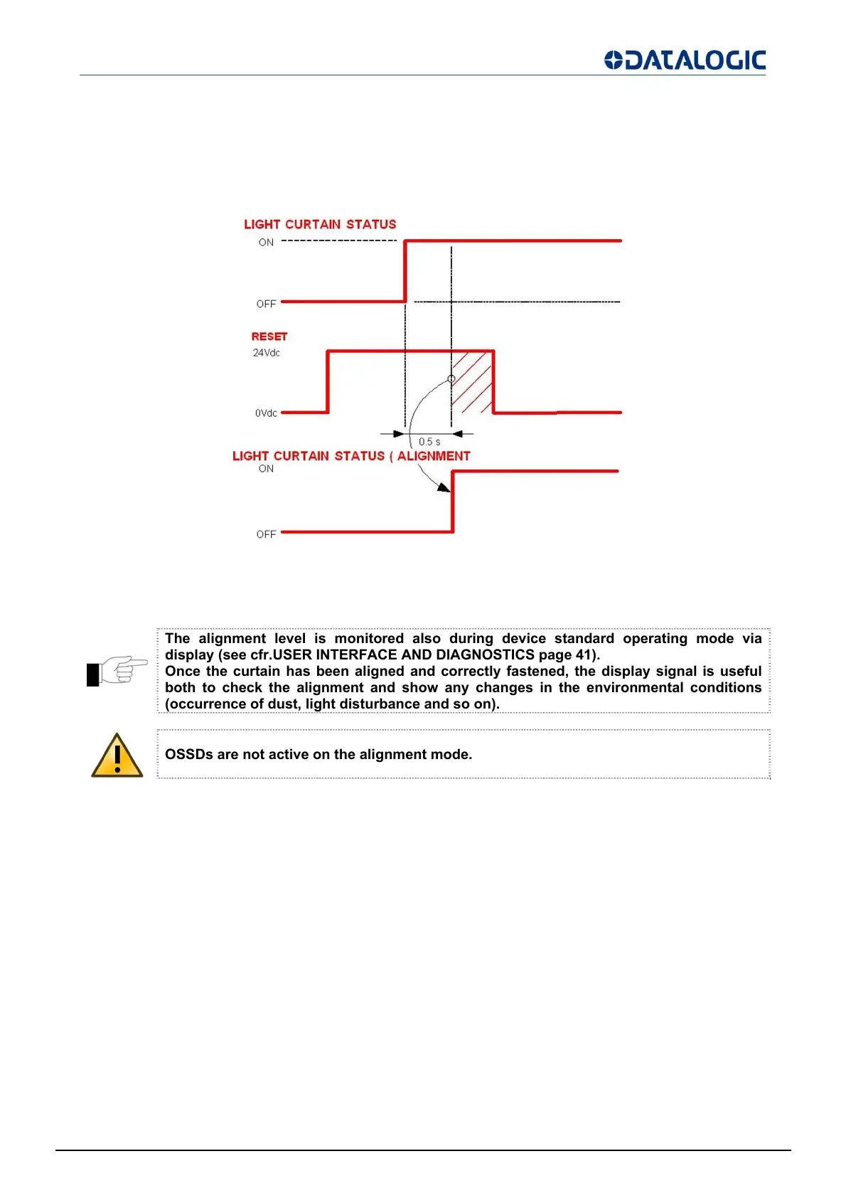 OSSDs are not active on the alignment mode.