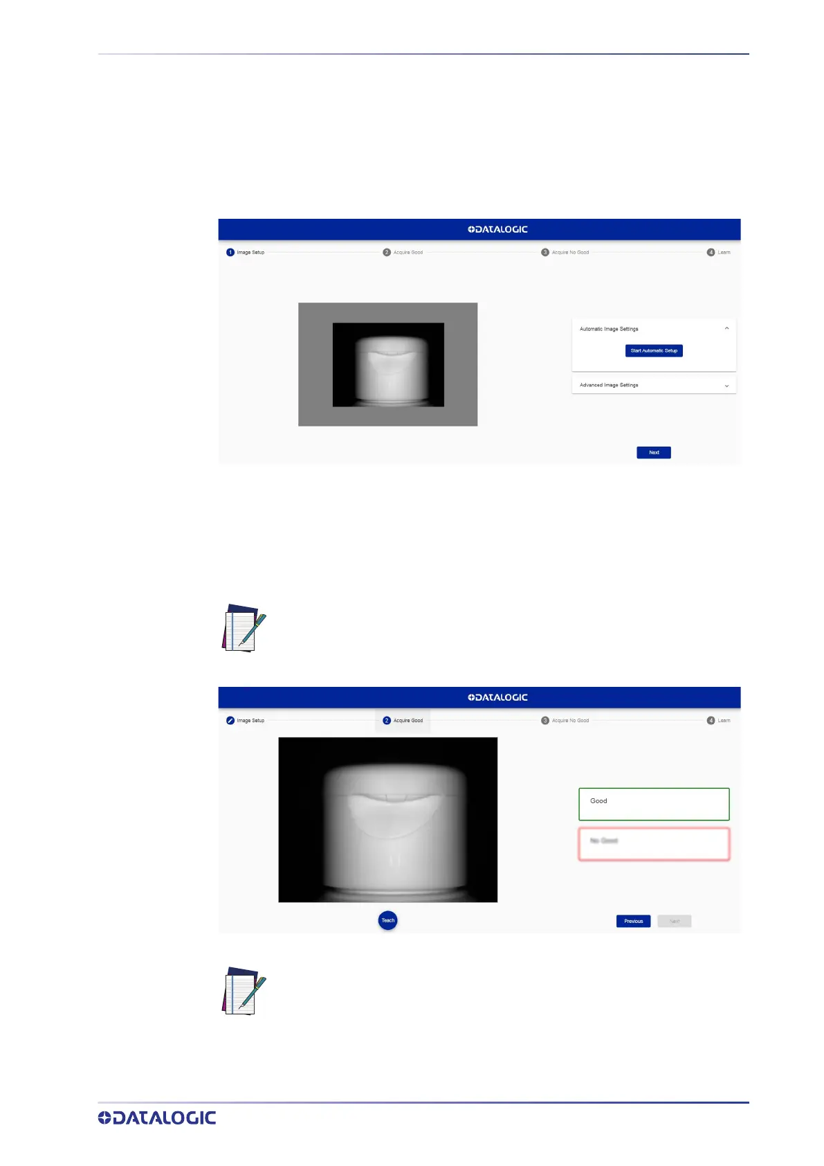 the Teach button. It is recommended to acquire as many GOOD images as the known
