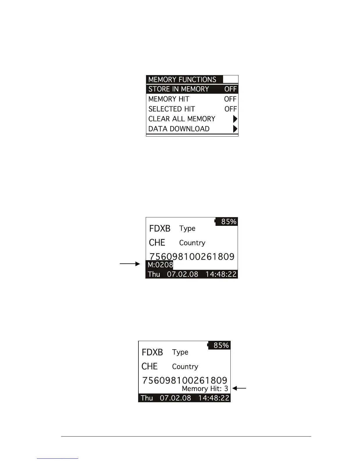 The memory hit function counts and shows on the display how many times the current ID code