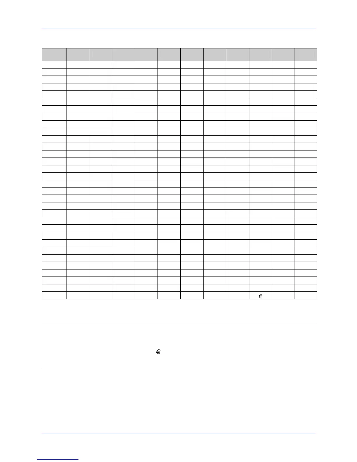 • The Euro currency character ( ) has been added to the table above at 255 (FF) as a