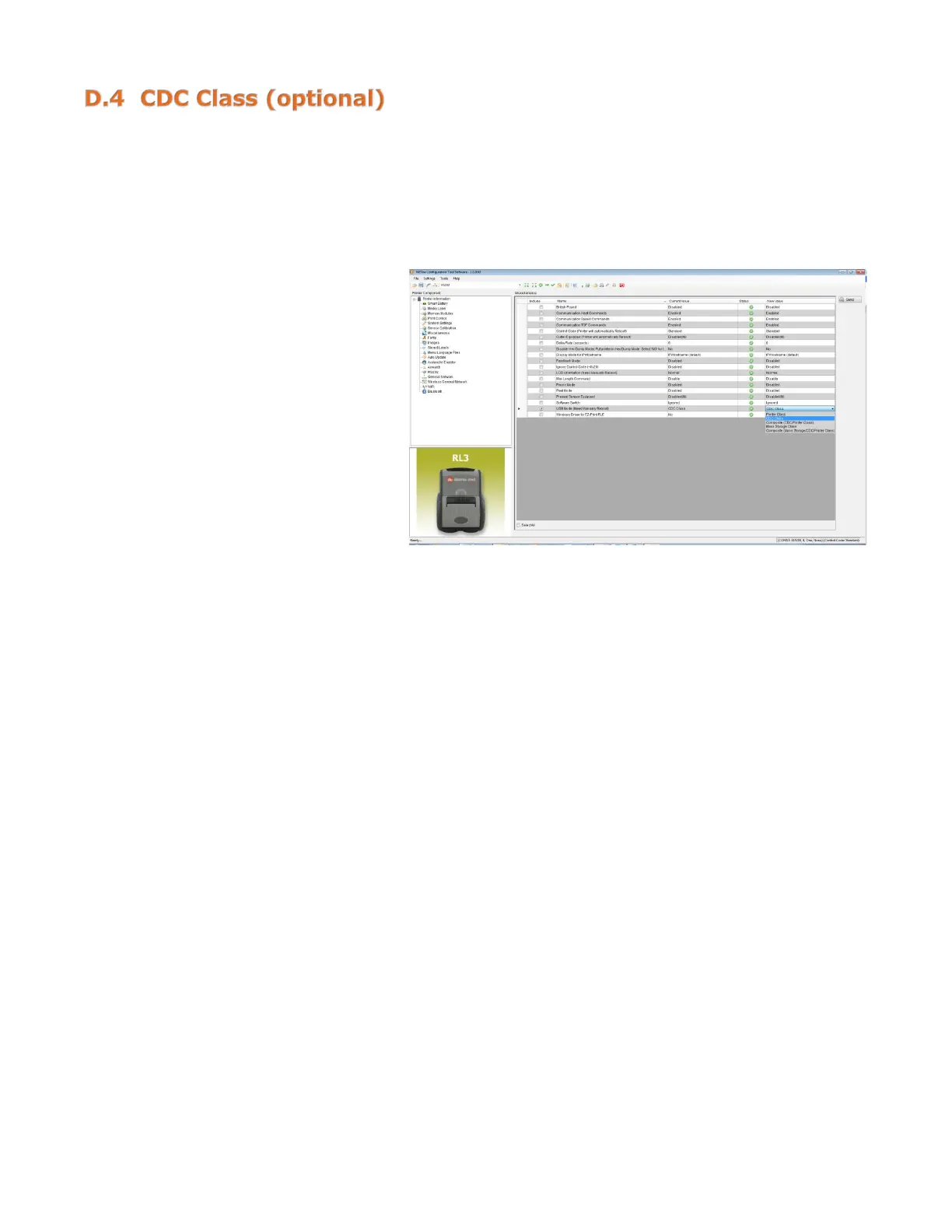 Once the printer is installed following the process in Section C.3, both the printer driver and USB CDC