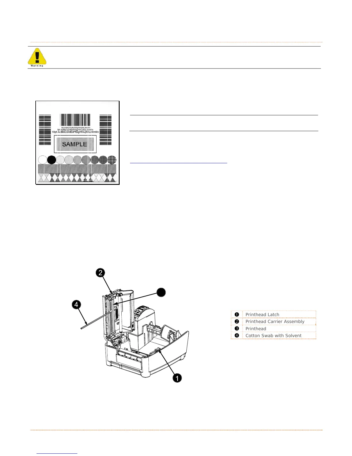 b) Remove media and ribbon. Using a Cotton Swab moistened (not soaked) with isopropyl alcohol,