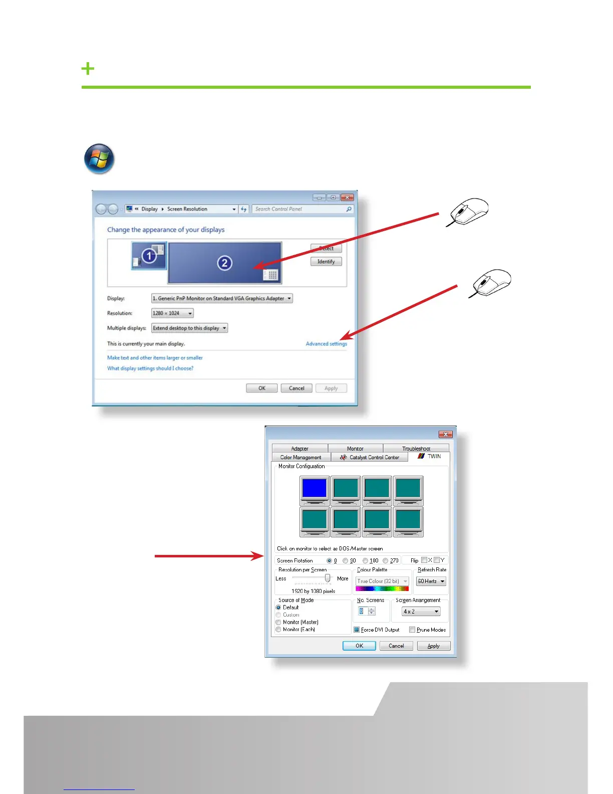 Start | Control Panel | Appearance and Personalization | Adjust screen resolution.