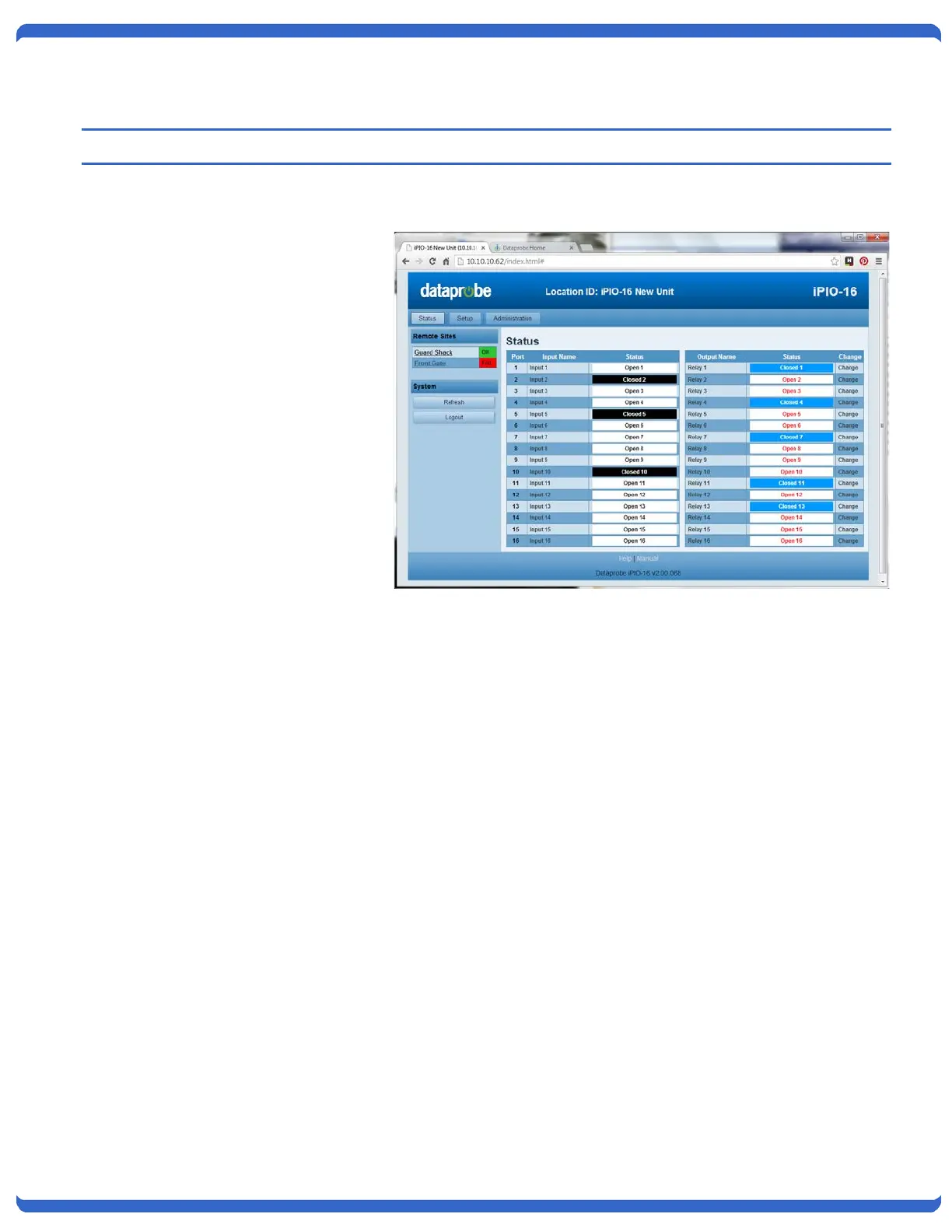 If the iPIO is programmed to communicate with remote units, each remote unit will be displayed in the left