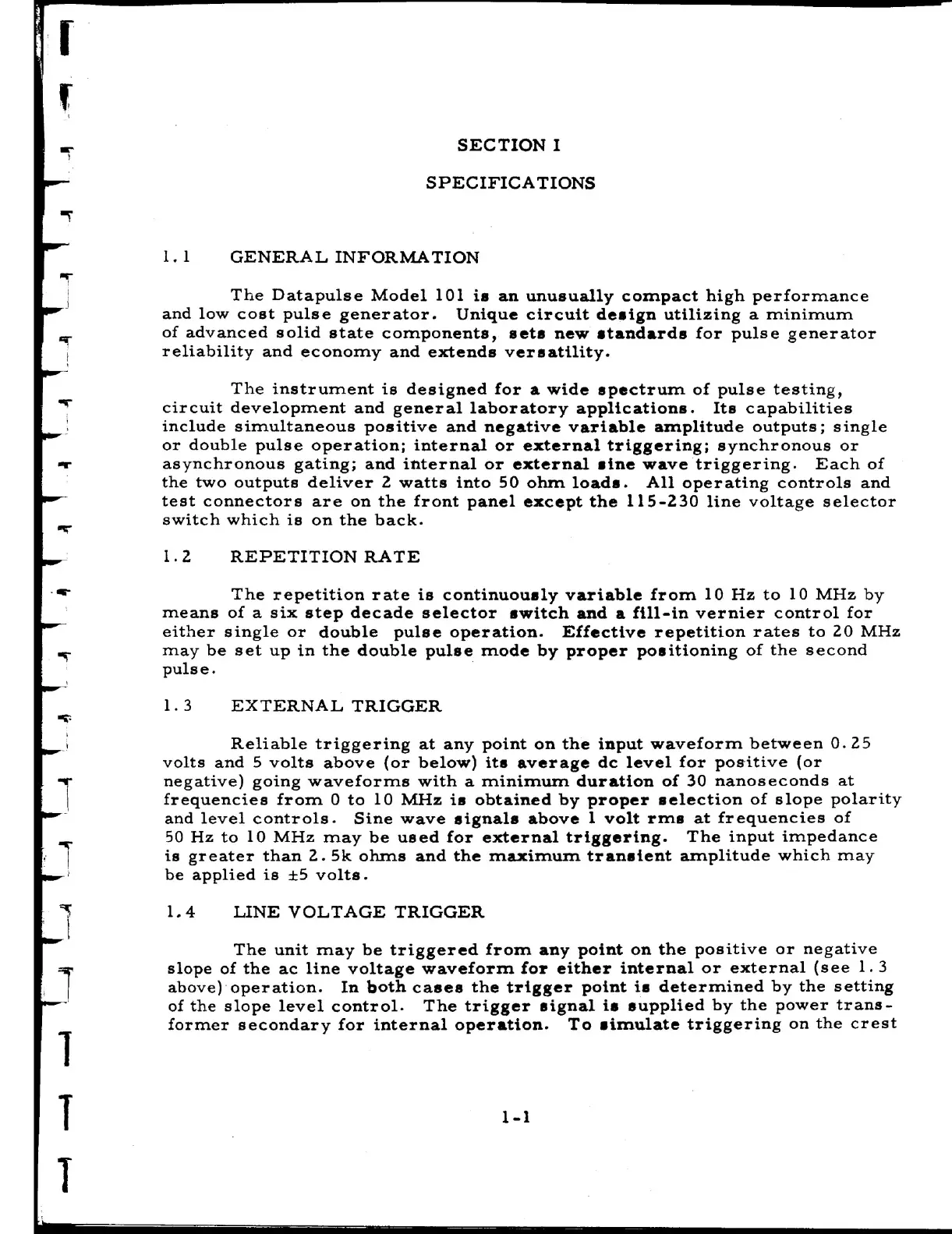 Datapulse 101 - Specifications; Repetition Rate; External Trigger
