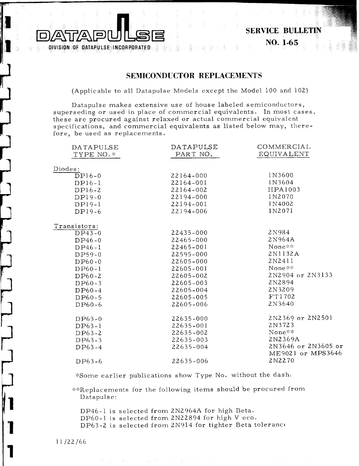 Datapulse 101 - Service Bulletin