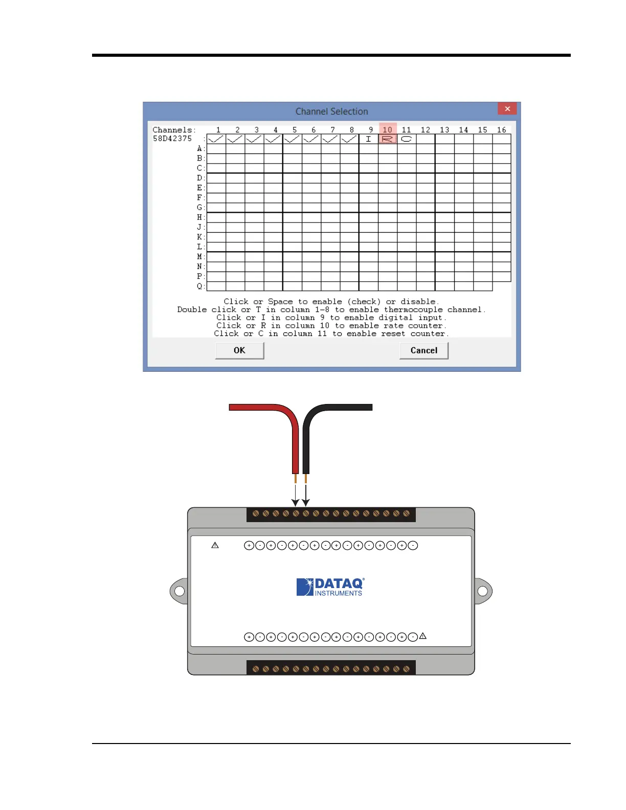 Connect any TTL pulse stream (30 VDC max) to the D2 Rate channel on the DI-2008.