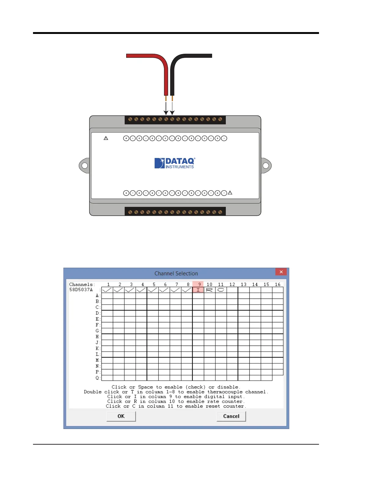 menu to open the Channel Selection grid. Channel 9 is the designated Digital Input channel. Click on the Channel 9