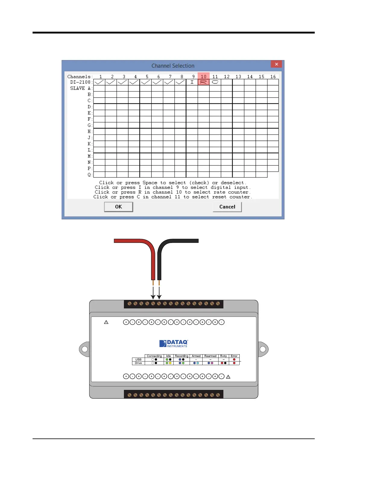 Connect any TTL pulse stream (25 VDC max) to the D2 Rate channel on the DI-2108.