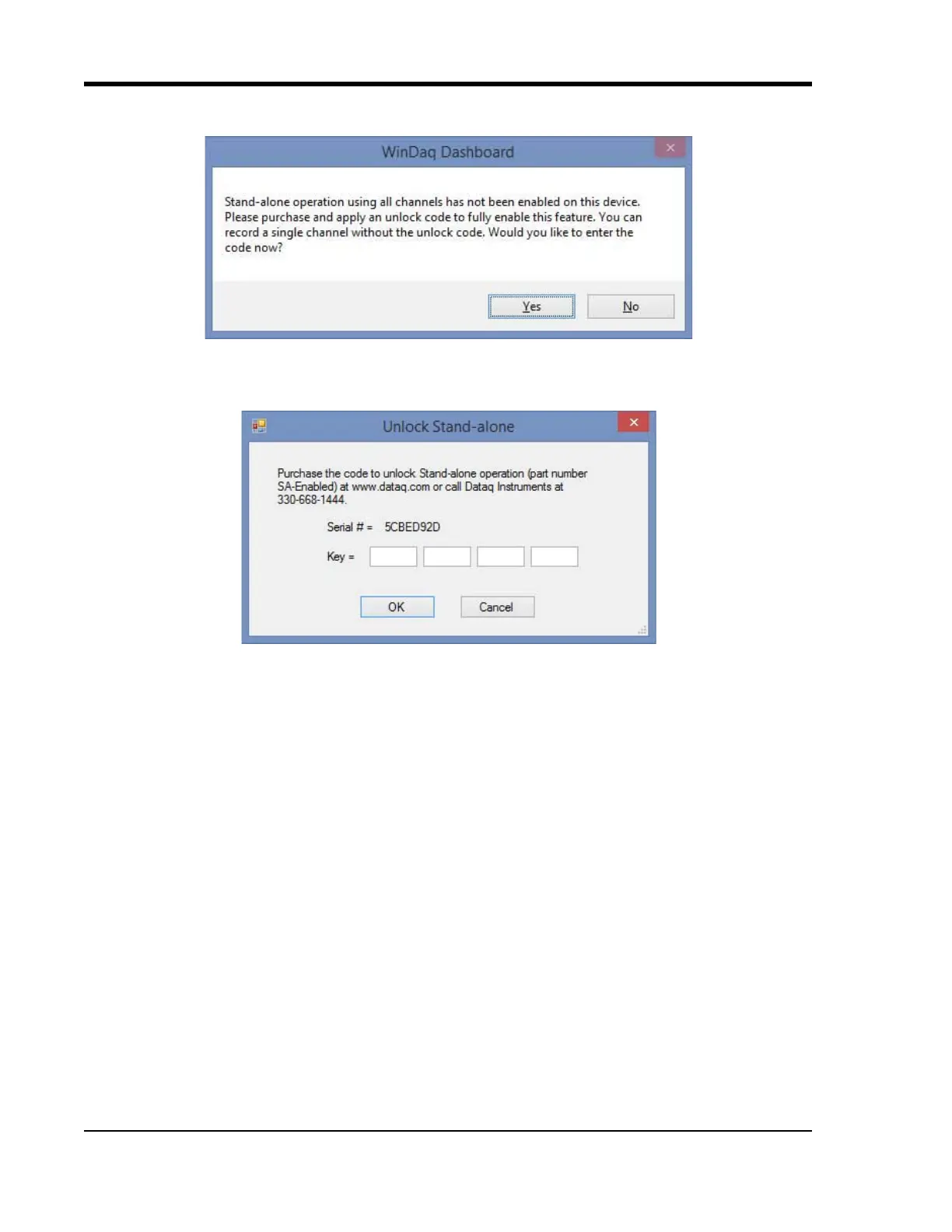 3. Click on the Yes button to enter your code. Click on the No button to go to Stand-alone configuration for a single
