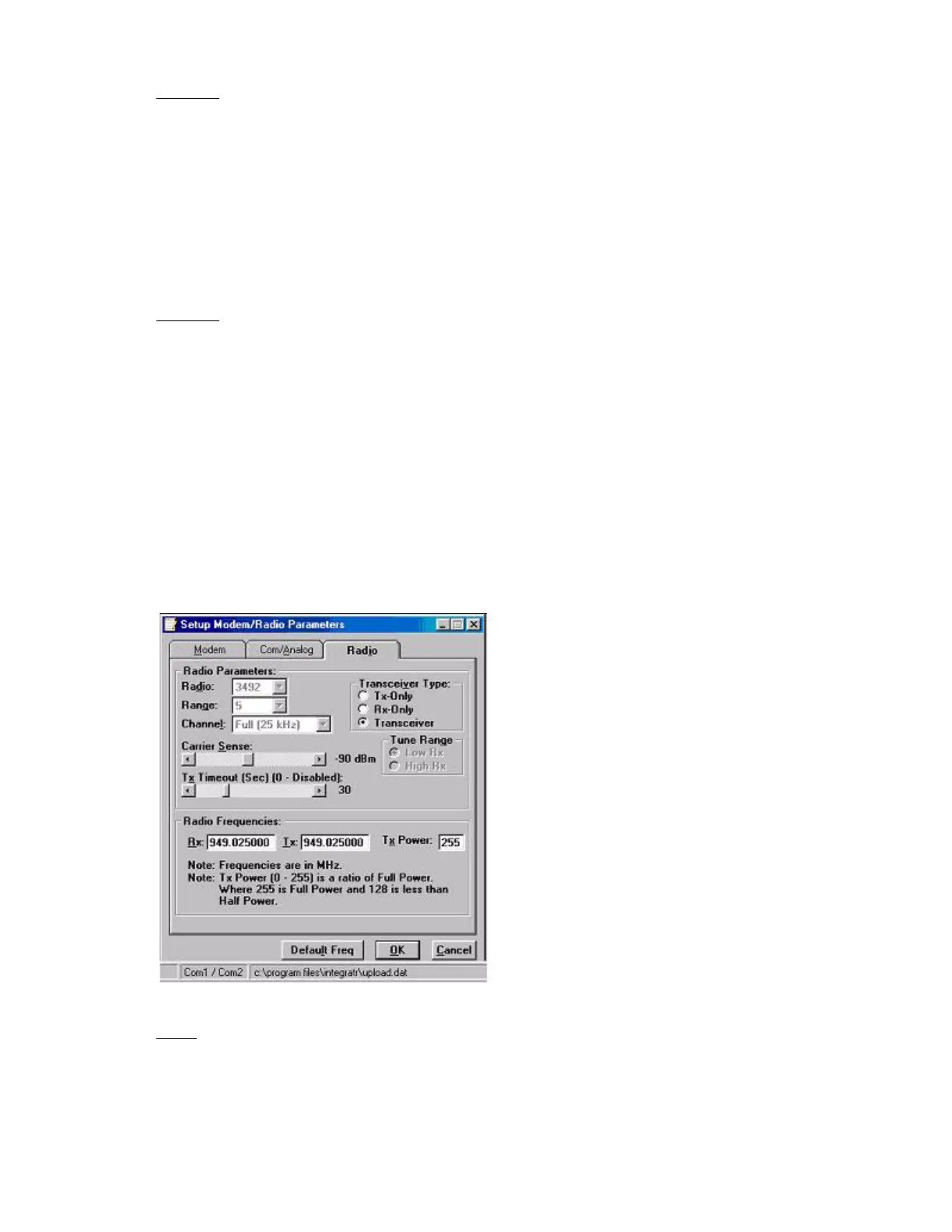 Figure 2-12 Radio Setup Parameters Screen