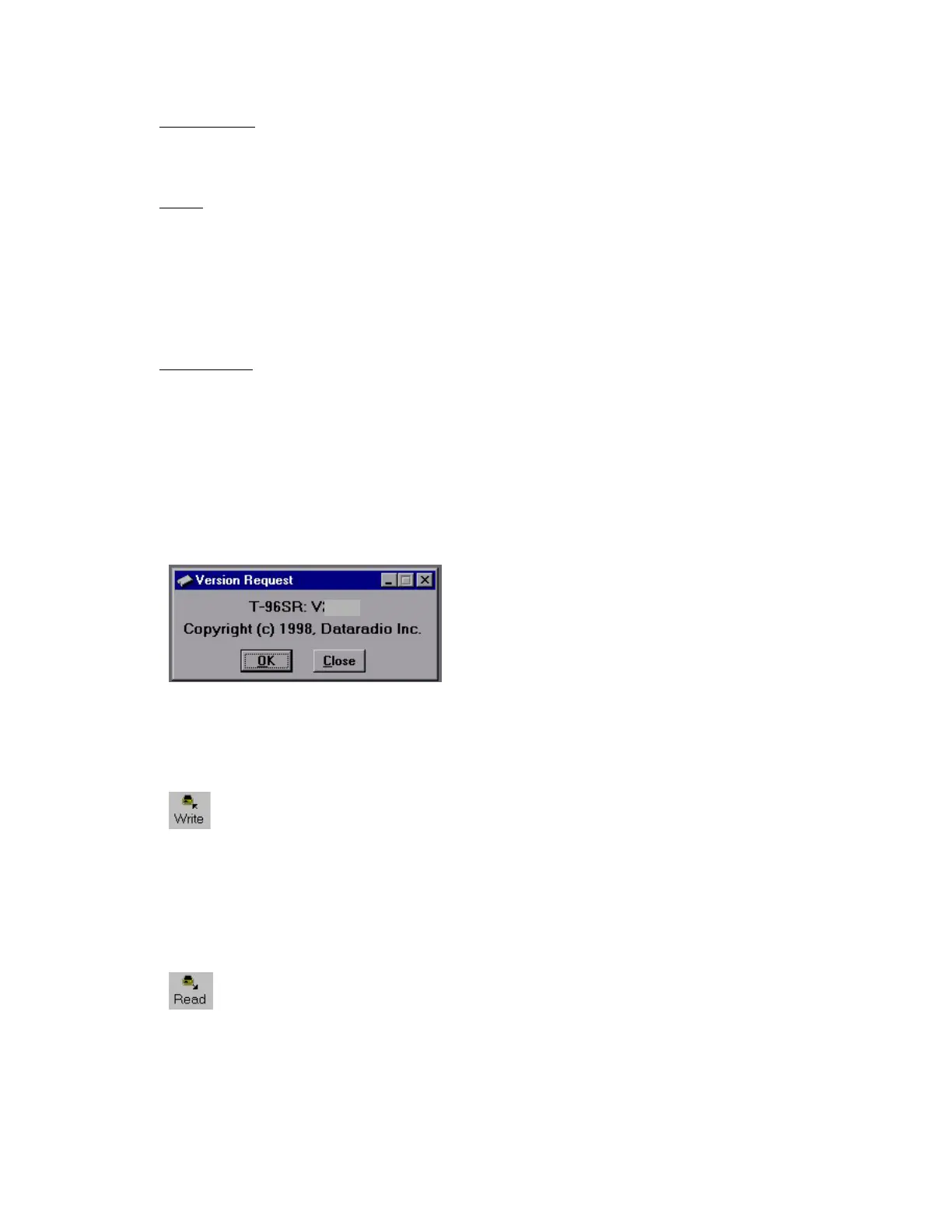 Note: Dataradio recommends a Read be done anytime an initial connection is made to the T-96SR Setup