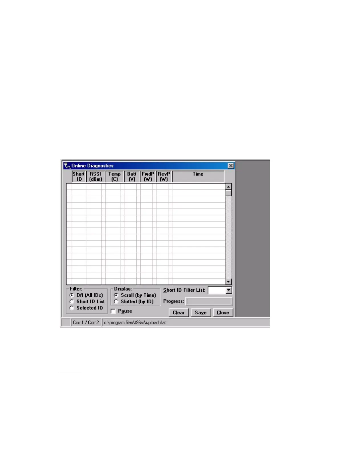 Online Diagnostics as they are received. This unit must have the Output Raw Diagnostic Data Only