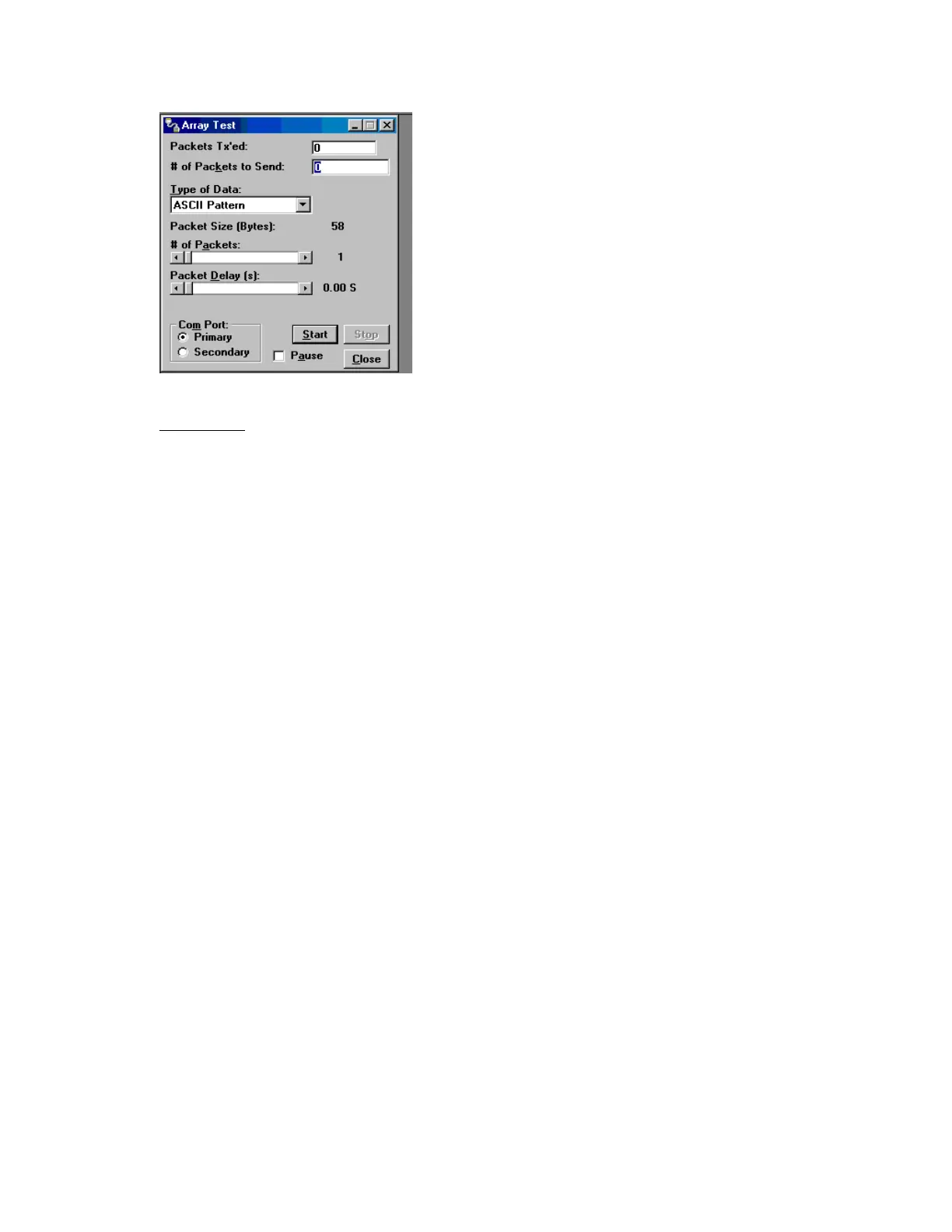 Type of Data allows the user to select the data pattern for each packet. The size for each data pattern is