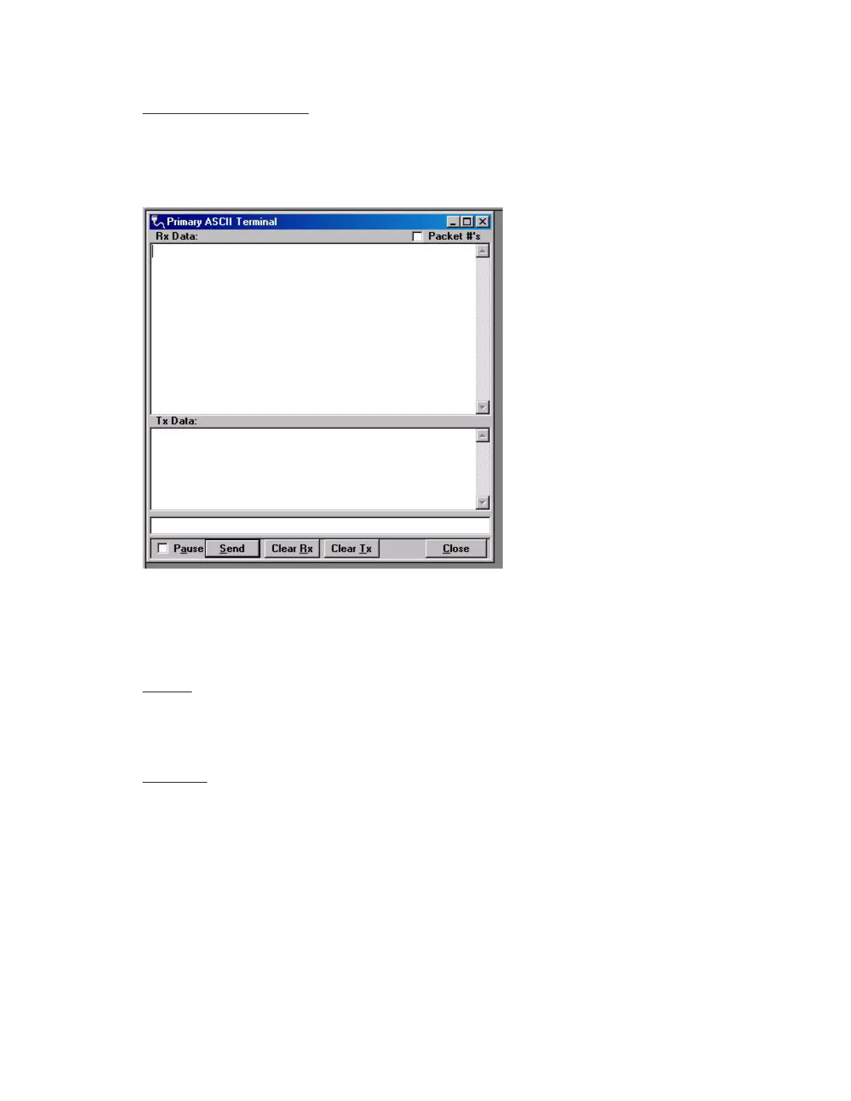 The Primary ASCII Terminal screen sends and receives ASCII data on the Primary COM Port (set up in the