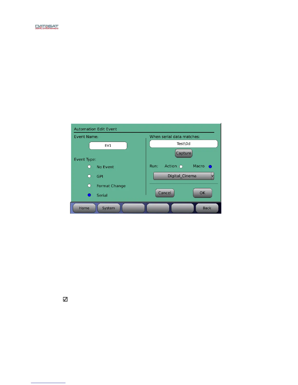 Figure 85. Automation Edit Event screen – Serial