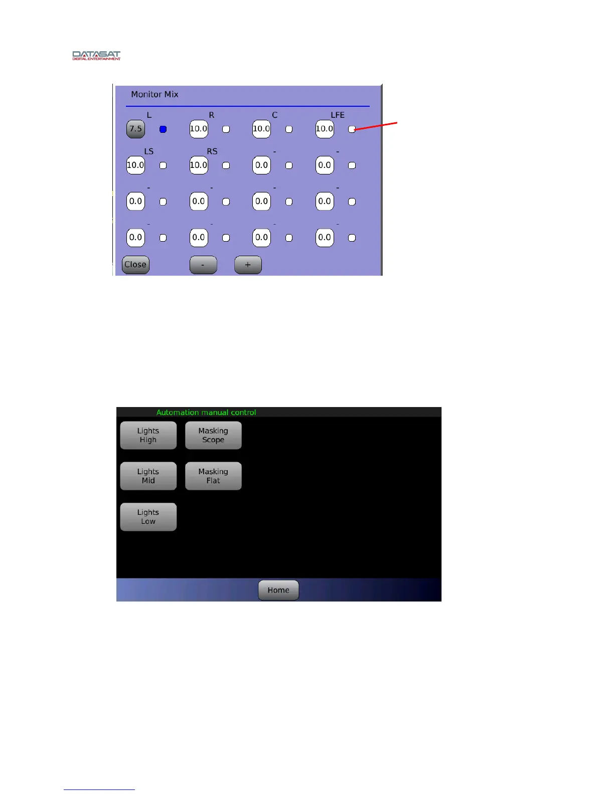 This screen allows for direct control of automation events. These are setup by the theater technician. A