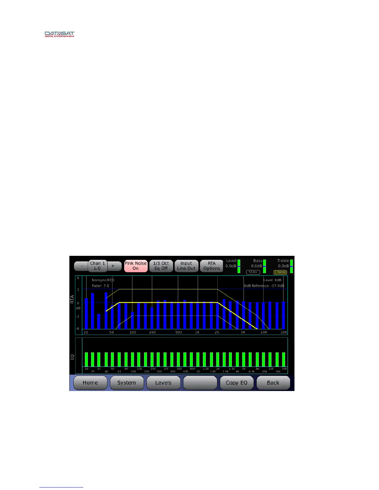 then rolls off 3dB per octave. The Third Octave EQ screen offers three ways to look at the
