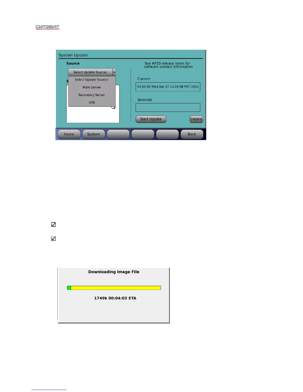 Note: If you select an older version of software than is currently loaded on the AP20, you will