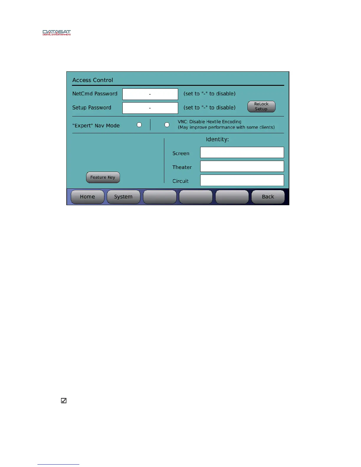 automation. This password will not block access to the Home Screen items, if using VNC, but