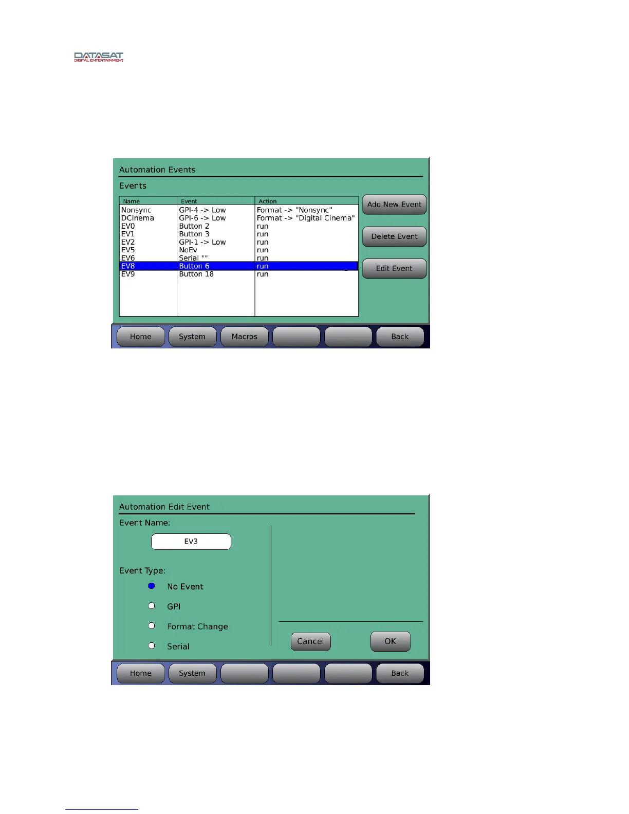 Existing events will be displayed in the Automation Events screen. The front panel adjustment knob