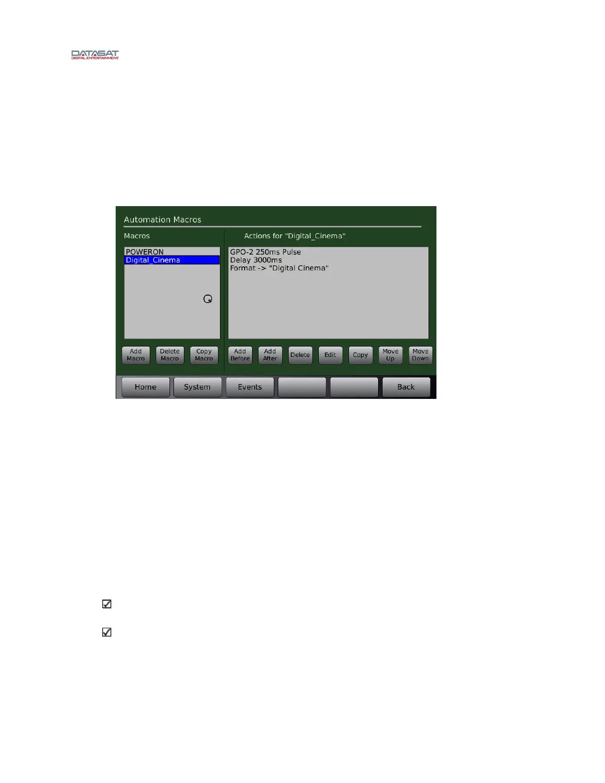 Figure 86. Automation Macros screen
