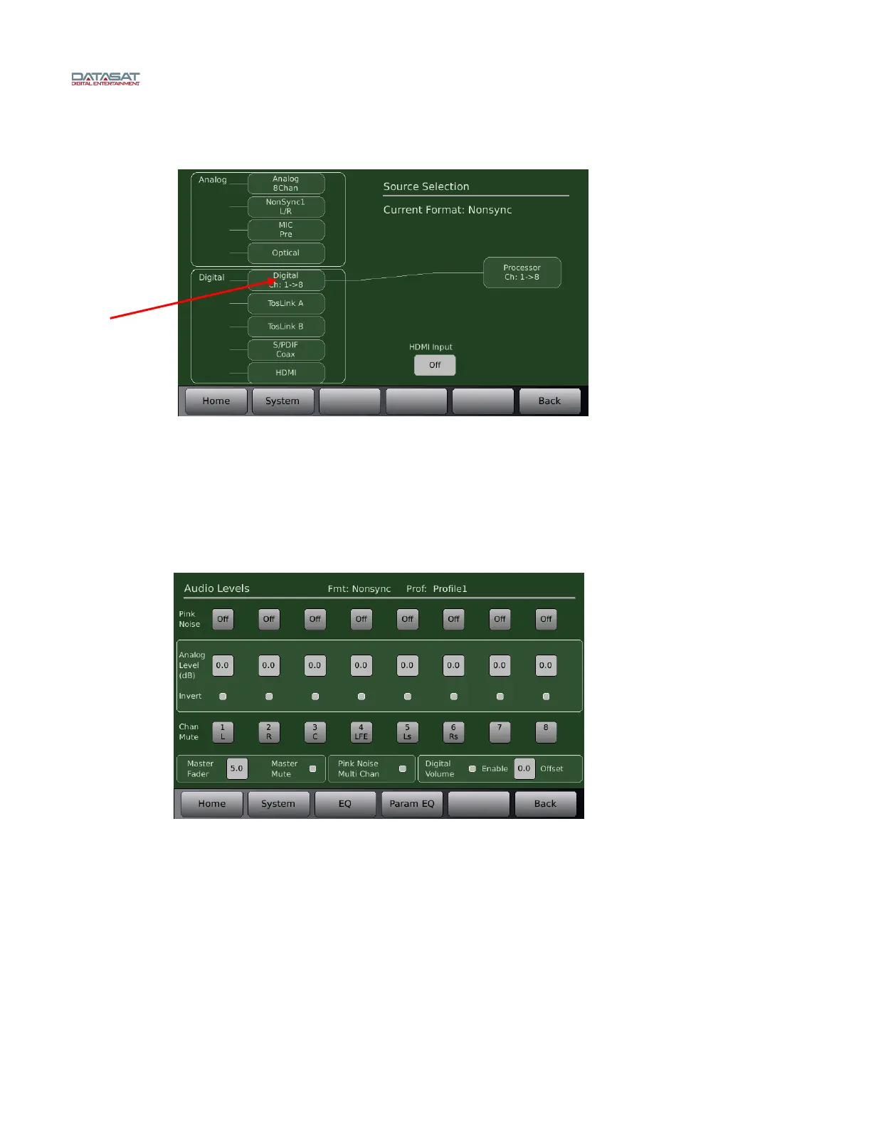 All selections in the Audio Levels Screen are limited to 8 channels.