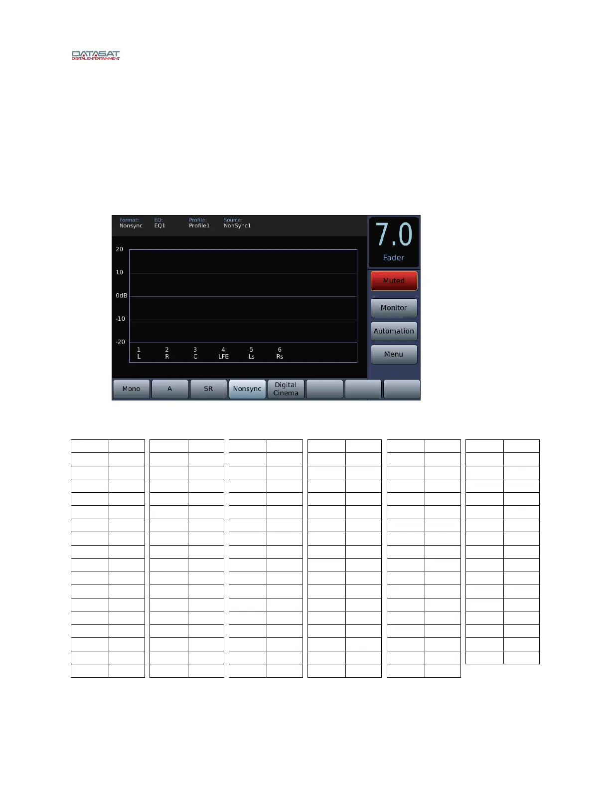 Fader reference level is 7.0. Table 2 below shows dB relative to the AP25 fader settings.