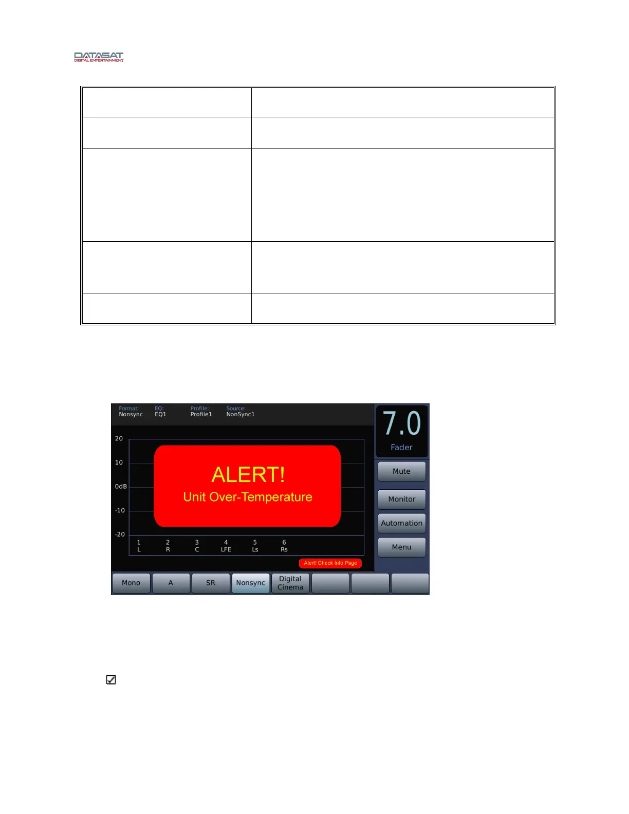 No sound in booth Verify the Monitor is not muted (red). To unmute, touch the Monitor