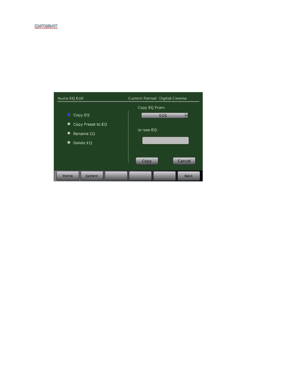 the virtual keyboard and enter a name for the new EQ. Press the Copy button to complete the