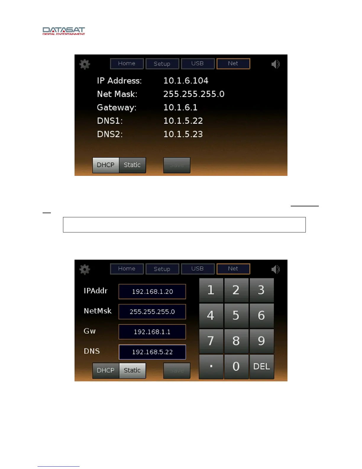 for Network IP address, Network Mask address, Gateway address, and DNS.