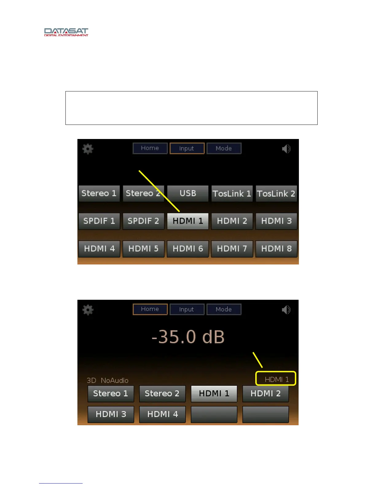 Figure 20. Home Screen, HDMI 1 Selected
