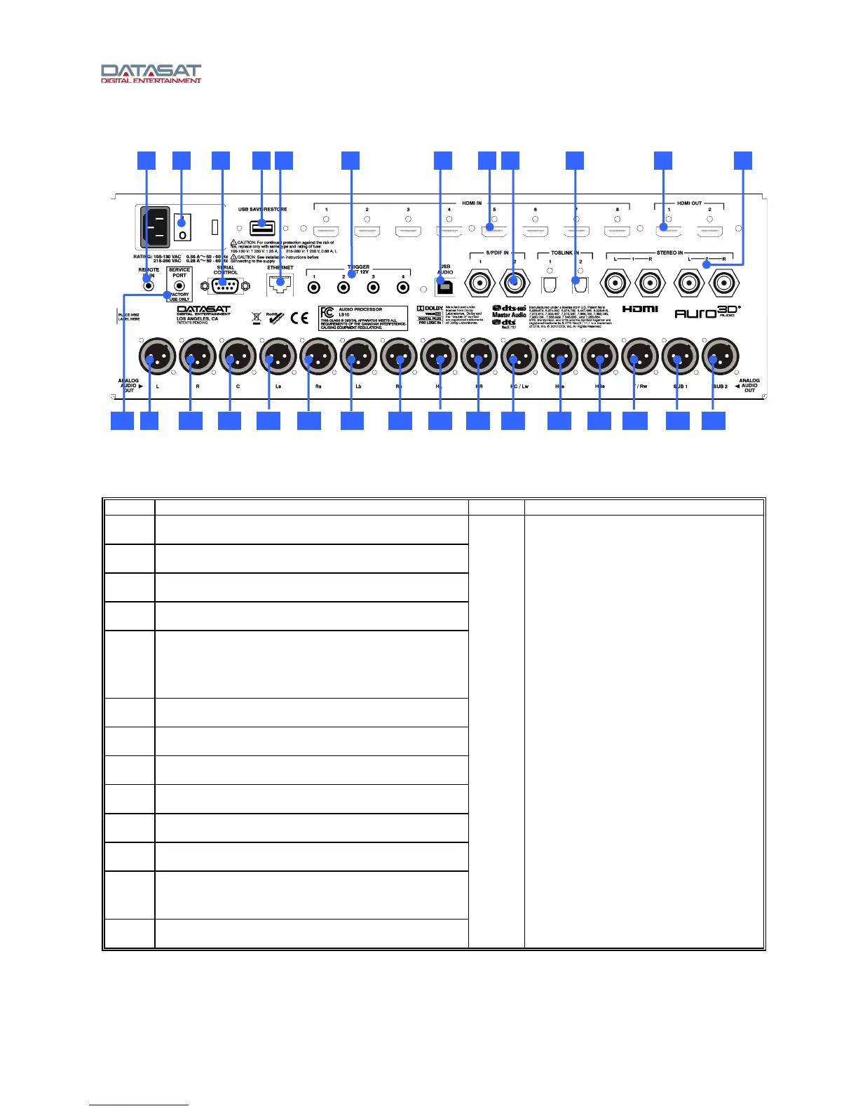 Table 4. LS10 Rear Panel Connections
